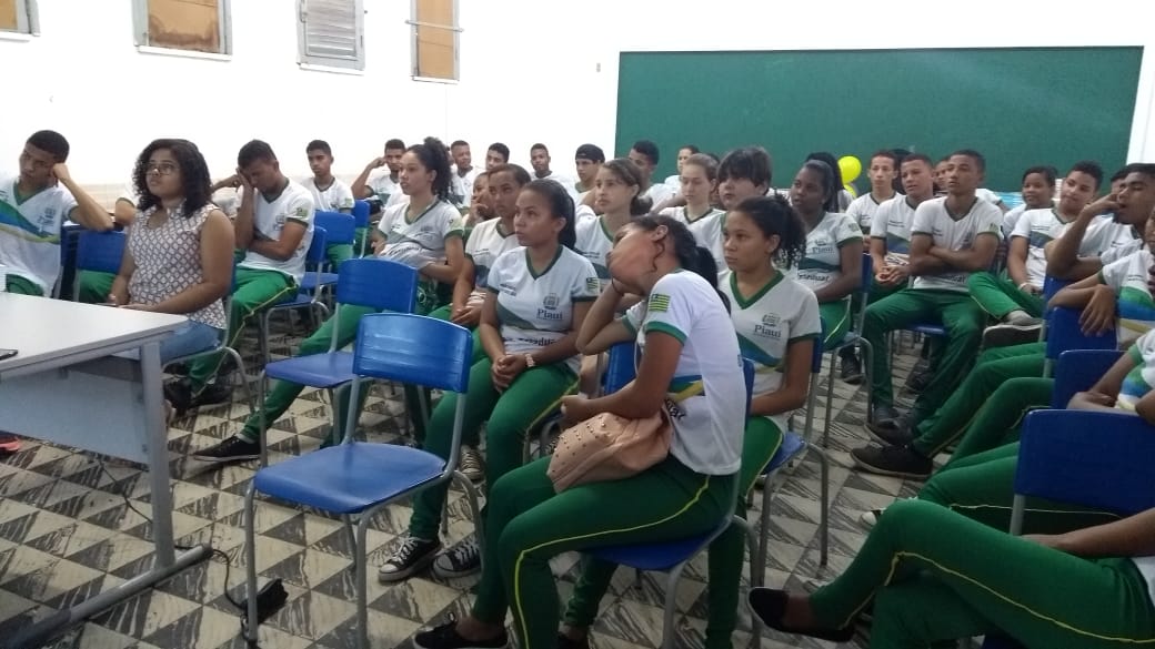Palestra com o tema "Drogas tô fora" uma atividade da 2ª semana presente2019 Enocs, coordenada pela professora Jeane Siqueira em parceria com PIBID UFPI.
