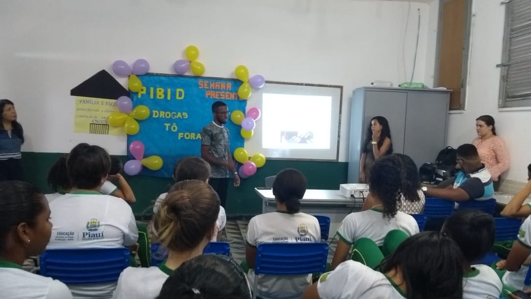 Palestra com o tema "Drogas tô fora" uma atividade da 2ª semana presente2019 Enocs, coordenada pela professora Jeane Siqueira em parceria com PIBID UFPI.