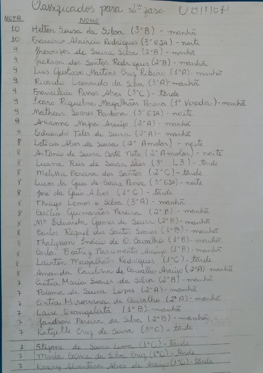 Encontra-se no mural da escola a lista de alunos classificados para 2ª fase da OBMEP.